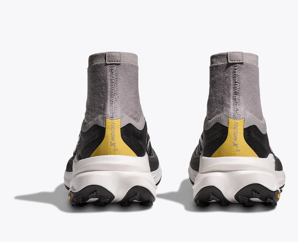 Ready to propel you through gnarly terrain, the Tecton X 3 adds winglets to its carbon fiber plates for extra stability in just the right spots, and two layers of PEBA in the midsole—our lightest, most resilient compound. Redesigned lug shape and positioning on a Vibram® Megagrip with Litebase outsole provide better traction, while a dynamic vamp allows feet to splay as the miles fly by. Topping it off, a knit collar extends up from the tongue like a gaiter to mitigate trail debris, and a lightweight Matryx® textile upper makes this version more durable and trail-worthy than ever.