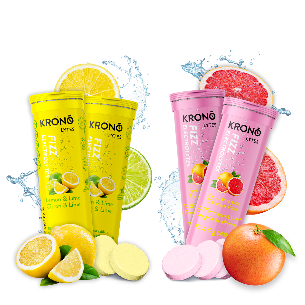 KronoLytes Fizz are effervescent tablets designed to provide fast, effective hydration, specially formulated to replace electrolytes lost during physical efforts. Each tablet provides 400 mg of sodium, ensuring crucial mineral replenishment, perfect for those wishing to maintain hydration without significant carbohydrate intake.