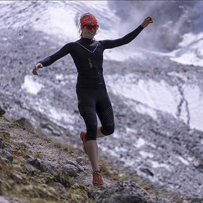 - The 3/4 tights alone: ideal when the weather is changing, they guarantee an optimal muscular support until the last effort.
